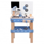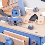 Opdag en kvalitets træarbejdsbænk til små gør-det-selv-børn, der understøtter finmotorik, kreativitet og læring gennem leg. Den stabile konstruktion i massivt træ, sikre afrundede kanter og det rige udvalg af værktøj i naturlige, blå og grå nuancer sikrer timevis af meningsfuld underholdning og konstruktionsbyggeri.