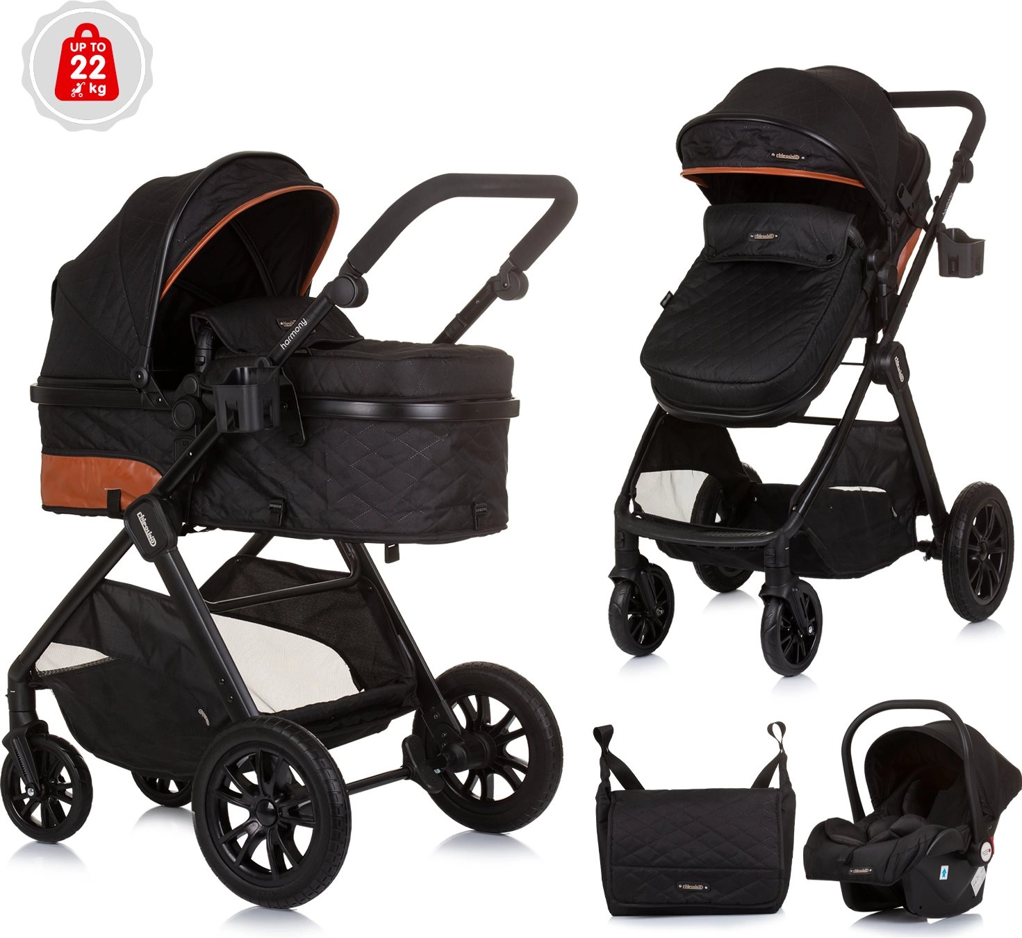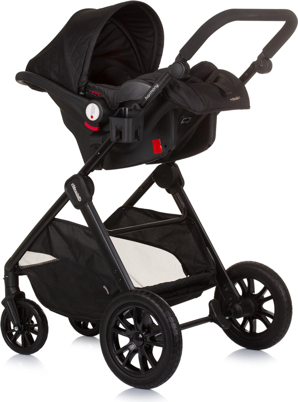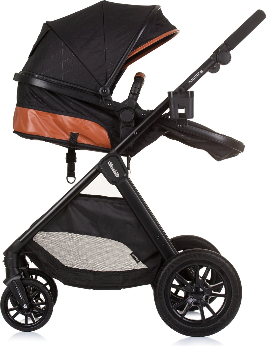 Harmony 2-i-1 er en gennemtænkt løsning fra nyfødt og op til 22 kg. Sædeenheden skifter nemt fra dyb lift til klapvogn og gør det muligt at køre barnet både forlæns og baglæns. Takket være den stive og lette konstruktion, de store affjedrede gummihjul og den pålidelige bremse klarer den både by og park.
