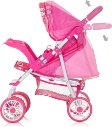 Det højdejusterbare håndtag vokser med barnet, og takket være den sammenklappelige konstruktion kan vognen nemt gemmes i skabet eller tages med på farten. Den praktiske kurv under sædet rummer alle småting, og sikkerhedsselen holder dukken sikkert på plads.