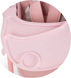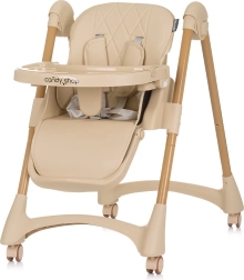 Højstolen CHIPOLINO Candy Shop macadamia er designet til børn, der kan sidde selvstændigt, med en vægt op til 15 kg. Takket være 8 højdeindstillinger, 3 positioner på ryglænet og 3 positioner på fodstøtten kan du nemt tilpasse sædet til barnets vækst og bordhøjden. Det brede, blødt polstrede sæde og 5-punkts sikkerhedssele med skulderpuder sikrer komfort og maksimal sikkerhed.