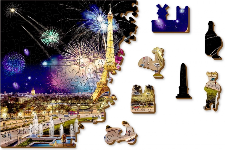 Nyd en unik samleoplevelse med det kvalitetsrige træpuslespil fra WOODEN CITY. Motivet af Eiffeltårnet om natten med fyrværkeri træder frem med dybe farver og præcis laserbearbejdning. Takket være dobbeltsidet 2-i-1 design kan du samle efter billedsiden eller efter formerne på bagsiden.