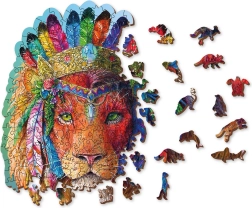 Oplev et imponerende træpuslespil med motiv af en mystisk løve med rigt udsmykkede og farverige detaljer. Unikt formede brikker, inklusive dyresilhuetter, forvandler samlingen til en kreativ og spændende oplevelse. Takket være laserfremhævede detaljer og helt glatte kanter er samlingen behagelig, og det færdige billede fremstår som et kunstværk, der også egner sig som interiørdekoration.