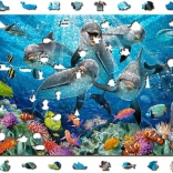 Forkæl dig selv med en unik puslespilsoplevelse med motiv af glade delfiner. Takket være de specialformede brikker, hvoraf nogle har dyreformer og kan bruges som små figurer, får du en anderledes læggeoplevelse fuld af overraskelser. Præcis laserbearbejdning sikrer skarpe motivdetaljer og helt glatte kanter uden splinter.