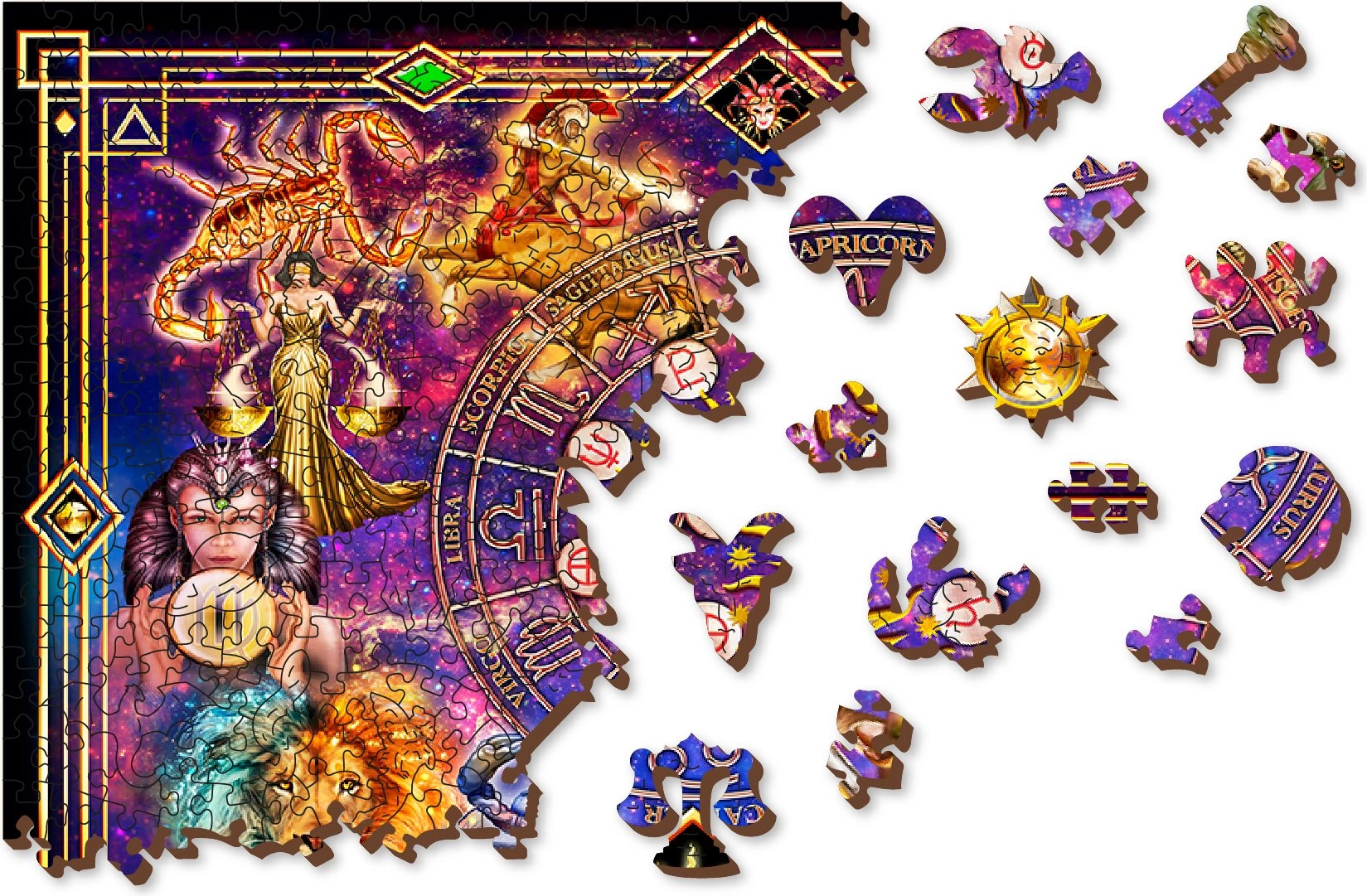 Laserudskåret træpuslespil fra WOODEN CITY med specialformede brikker, der gør det utrolig underholdende. Nogle af brikkerne er formet som dyr, bygninger eller genstande, hvor laserfremhævede detaljer forstærker den visuelle effekt. Disse brikker kan stå selv som små figurer. At lægge et puslespil med forskelligt formede brikker er sværere og udgør en større udfordring end et klassisk puslespil. Puslespillet er desuden dobbeltsidet, så du kan samle det efter motivet (forsiden) eller efter formen (bagsiden med mønster). Mærket WOODEN CITY glemmer heller ikke økologi; derfor finder du ingen plastemballage på disse produkter.