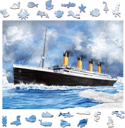 Træpuslespillet WOODEN CITY Titanic giver en unik pusleoplevelse takket være laserskårne brikker med detaljeret udformning. En del af brikkerne har specialformer, der passer til temaet – dyr, bygninger og genstande – og kan også stå selv som små figurer. Den dobbeltsidede 2-i-1 udførelse gør det muligt at lægge efter billedet eller efter det gentagne mønster på bagsiden, hvilket øger sværhedsgraden og underholdningen.