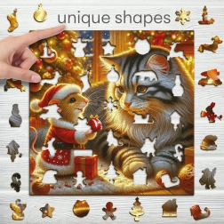 Træpuslespillet WOODEN CITY “Kat og mus” byder på en anderledes oplevelse med originalt formede brikker, hvor nogle forestiller dyr og kan stå selv som små figurer. Takket være laserfremhævede detaljer og glatte, splintfri kanter er lægningen behagelig, og resultatet bliver visuelt imponerende.