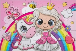 Dette eventyrlige puslespil med prinsesse og enhjørning er ideelt som det første puslespil. De store, lette brikker støtter børns finmotorik, tålmodighed og logiske tænkning. Når puslespillet er samlet, får I et smukt billede, som børnene vil elske.