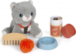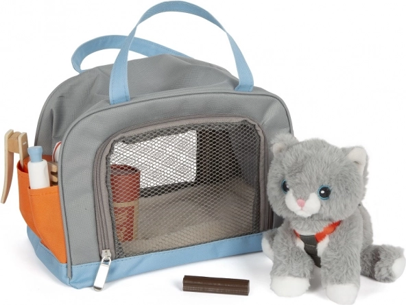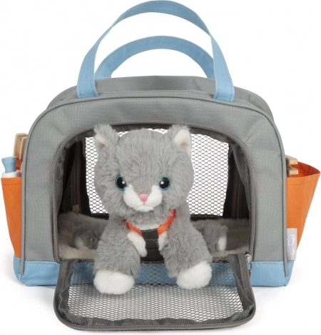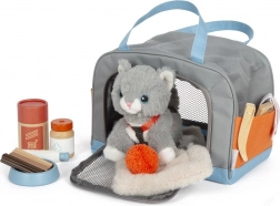 Dette veludstyrede sæt rummer alt, hvad børn behøver for at passe deres bløde, pelsede skat. Katten med sele kan rejse i den komfortable bæretaske med måtte, og når der er brug for det, har børnene redskaber klar til fodring, behandling og hygge. Leg som lille dyrlæge udvikler empati og ansvar på en sjov måde.