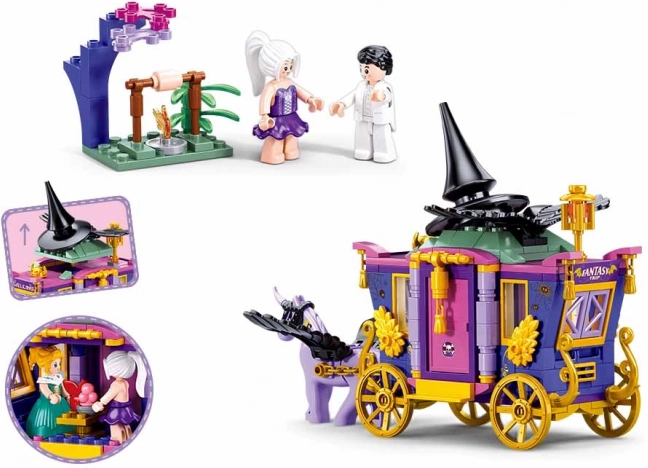 Byg en charmerende karet fyldt med detaljer og tag på en eventyrlig tur trukket af en lilla enhjørning. Ideel til kreative scenarier og rolleleger.