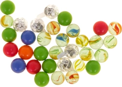 Der medfølger 33 kugler, heraf 5 blinkende med farvede LED’er. Lyseffekterne indbyder til at afprøve nye ruter og forlænger legens varighed.