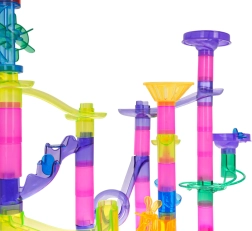 Byg din egen kuglebane med et rigt sæt på 105 dele og nyd timevis af kreativ leg. Farvede, gennemsigtige dele lader børn fra 3 år bygge forskellige baner, mens 33 kugler inklusive 5 styk med batteridrevne lys gør legen endnu sjovere. Denne bane udvikler kreativitet, finmotorik, hånd‑øje‑koordination og lærer logisk tænkning samt tålmodighed.