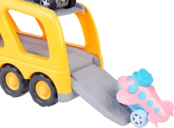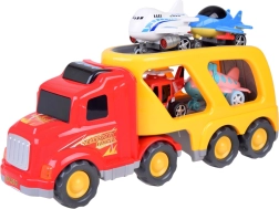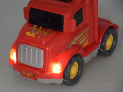 Denne store børnelastbil med sættevogn er ideel til små chauffører og piloter. Takket være friktionsdrevet er det nok at skubbe legetøjet hen over en glat overflade, så kører det. På taget af førerhuset er der en knap, som aktiverer realistiske motor- og hornlyde samt lyseffekter, så legen bliver endnu sjovere.