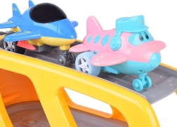 Sættet indeholder tre fly og en helikopter, som nemt kan lastes via den udklappelige rampe. Den robuste plastkonstruktion i livlige farver er sikker og modstandsdygtig til daglig leg.