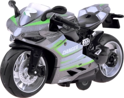 Motorcykel med trykstøbt metal er et legetøj for enhver fan af store og små tohjulede køretøjer. Motorcyklen er lavet af metal med plastdetaljer. Store hjul med gummidæk forbedrer grebet. En bonus er støddæmperen på det bageste hjul. Motoren kører, når fjederen trykkes sammen. Placer simpelthen motorcyklen på en flad overflade, træk den tilbage, og slip! Føreren vil køre fremad! Den realistisk gengivne motorcykel vil give masser af sjov til ethvert barn. Motorcyklen er meget omhyggeligt og æstetisk fremstillet.