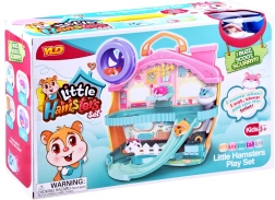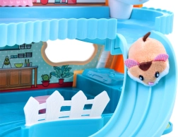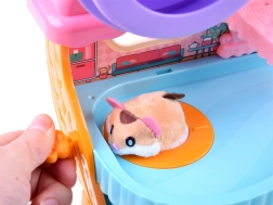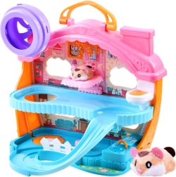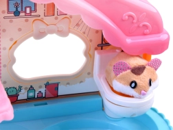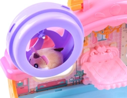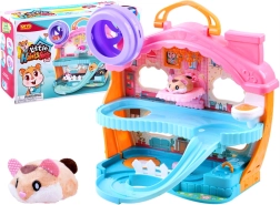 Et sødt sæt med en interaktiv plyshamster og et farverigt hus fuld af sjov vil glæde ethvert barn. Indeni finder du et løbehjul, en seng med gab- og snorkelyde, et toilet med skyl, en rutsjebane og en elevator. Hamsteren er blød at røre ved og klar til leg lige efter udpakning.