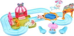 Den farverige bane med sporskifter ændrer køreretning. Sæt vognen på, og se hamsteren levere lækkerier langs den glatte rute.