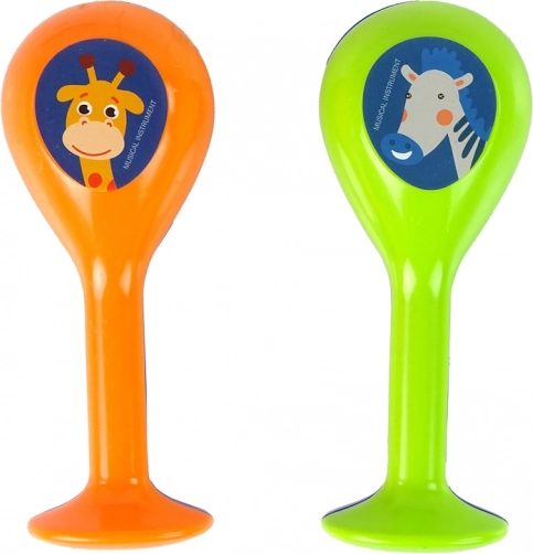 Sættet med to rangler med dyremotiver er et ideelt redskab til dit barns gode udvikling og glæde. Takket være de farverige mønstre og lyde, som ranglerne skaber, stimuleres barnets hørelse og syn, samtidig med at fantasien understøttes. Ranglerne hjælper med at udvikle kreativitet og er perfekte til de første musiklege, små optrædener eller andre musikalske aktiviteter.