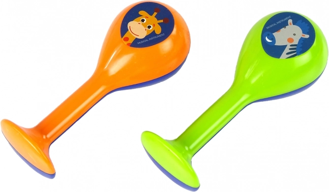 Sættet indeholder to rangler med motiver af en giraf og en zebra, som ved rystning udsender en karakteristisk raslende lyd. Legetøjet er fremstillet af plast i høj kvalitet, er sikkert, uden skarpe kanter og ligger perfekt i små børnehænder.