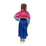Med følger en lyserød kappe, der bindes, som giver outfittet et eventyrligt præg. Takket være den behagelige pasform og de lette tekstiler er kostumet rart at have på og giver fri bevægelse under leg.