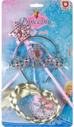 Forvandl hverdagslegen til et eventyr! Dette prinsessesæt giver alt, hvad en lille pyntedukke behøver – en elegant krone pyntet med funklende lyserøde sten, en let tryllestav og en ekstra lang fletning på cirka 62 cm.