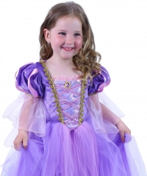 Gennemarbejdede detaljer i lilla nuancer kombineret med gyldne kanter giver kostumet et festligt udtryk – perfekt til karneval, fødselsdage og udklædning derhjemme.