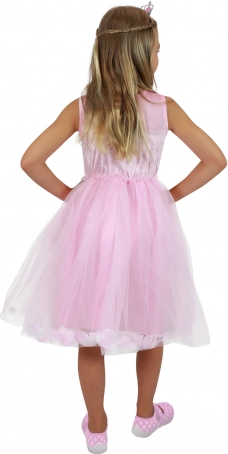 De lyserøde svaneprinsesse-kjoler bringer magi ind i hverdagen. Et let lag tyl over en satinfoer skaber et fyldigt udtryk og får skørtet til at bølge smukt i bevægelse. Overdelen med svanemotiv virker delikat og elegant, så din pige vil føle sig som en ægte prinsesse.