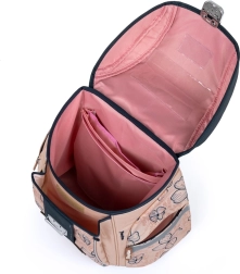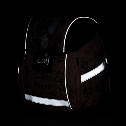 Den praktiske indretning med skilleinddeling og mange lommer hjælper med at holde bøger, hæfter og madpakke overskueligt på plads. Reflekselementer øger barnets synlighed på vej til og fra skole. Tasken passer til mindre kroppe og “vokser” med barnet takket være justerbare remme.