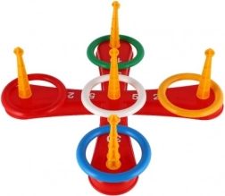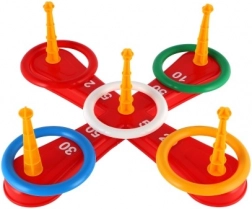 Dette kastes med kors og ringe er en perfekt kombination af sjov og læring. En fantastisk måde at træne hånd-øje koordination hos børn, mens de leger. Spillet inkluderer en korsbase med fem stativer og farverige ringe, der skal kastes på stativerne for at samle point.