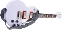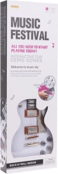 • Pakkens indhold: hvid elektrisk guitar, høretelefonsæt med mikrofon, rem