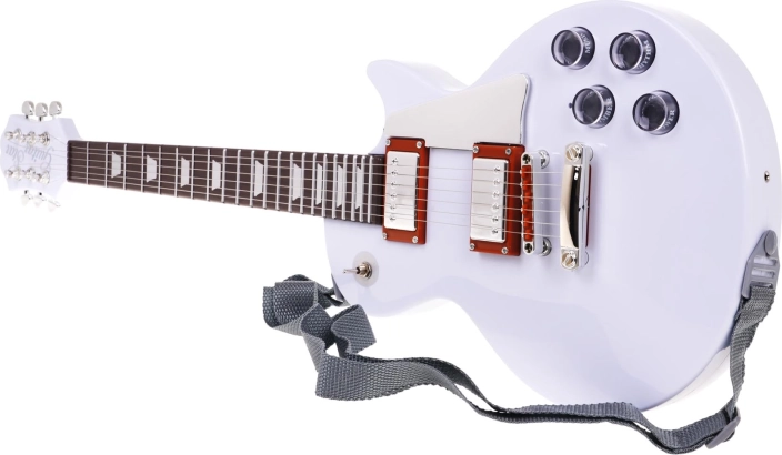 Opdag et sjovt musiksæt, der ligner et rigtigt instrument og motiverer børn til at spille. Den hvide elektriske guitar med høretelefon-mikrofon støtter finmotorik, rytmesans og selvudtryk.