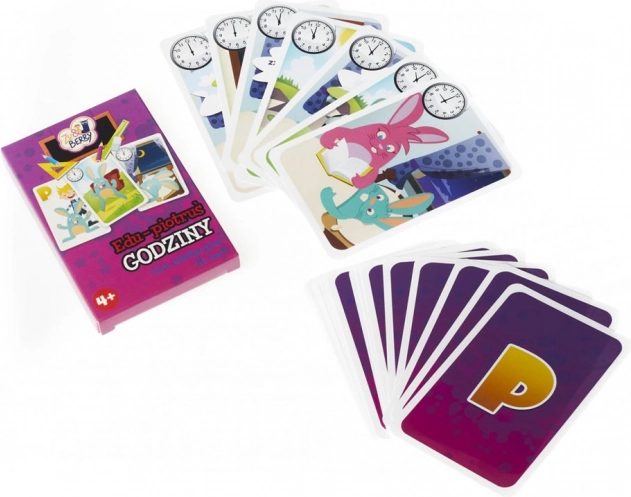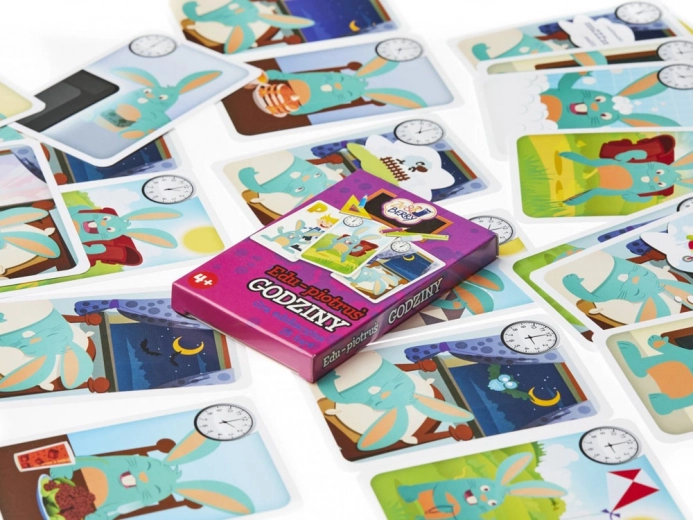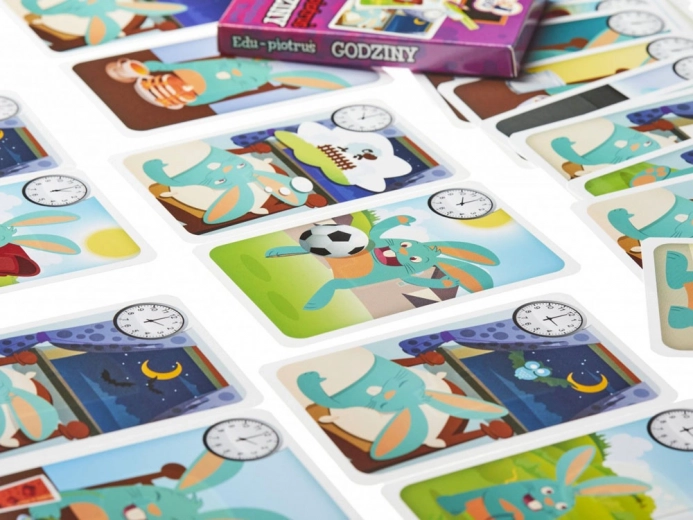 Den pædagogiske version af det klassiske spil Piotruś udvikler logisk tænkning, opmærksomhed og evnen til at matche. Børn parrer kort med samme klokkeslæt, men med forskellig tid på dagen – for eksempel kl. 2:00 kan man både sove eller spise frokost. Spillet er sjovt og lærer samtidig at læse tiden på analoge ure.