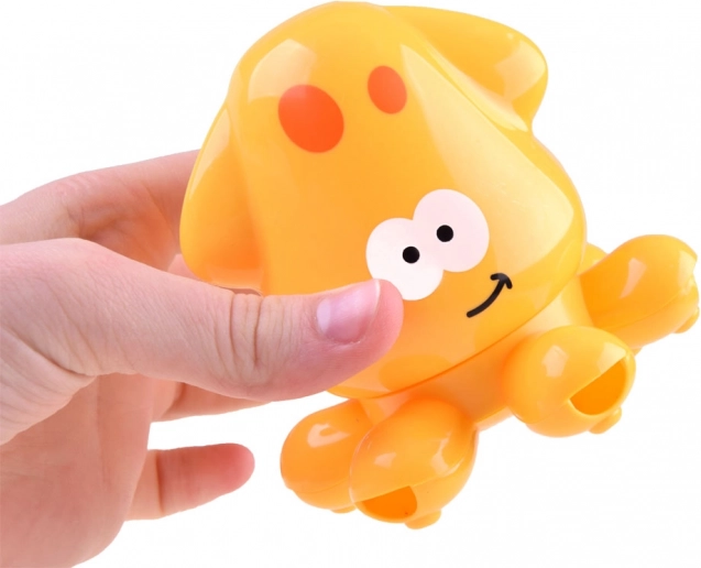 Legetøjet sidder fast på glatte overflader takket være flere sugekopper. Det er let at montere på fliser eller karrets væg og lige så let at tage af efter badet.