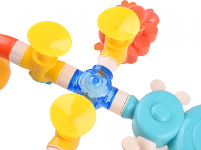 Legetøjet er udstyret med stærke sugekopper til stabil fastgørelse på glatte overflader (fliser, badekar). Sikker, farverig plast indbyder til opdagelse og udvikler finmotorik, logisk tænkning og kreativitet.