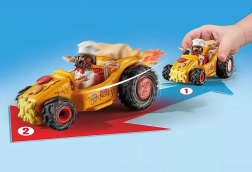 Køretøjet har plads til en PLAYMOBIL-figur, og takket være den praktiske pull-back drivkraft er der øjeblikkelig sjov uden batterier. De glade karrosserier kan pyntes med forskelligt tilbehør, så børn kan tilpasse deres racer helt efter deres egen smag.