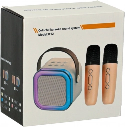 Afspil musik nemt via Bluetooth eller fra et hukommelseskort. På enheden finder du knapper til hurtig styring af numre og lydstyrke, og der er 6 stemmeændringstilstande for ekstra underholdning. Indbyggede batterier giver op til 2,5 timers drift for højttaleren og 3,5–4 timer for mikrofonerne.