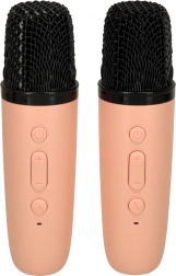 Nyd spontan sang hvor som helst – den kompakte lyserøde højttaler med læderstrop er let at tage med og leverer klar lyd på 6 W. RGB-belysning med 5 tilstande understreger feststemningen, mens 2 trådløse mikrofoner giver frihed til at synge sammen uden kabelrod.