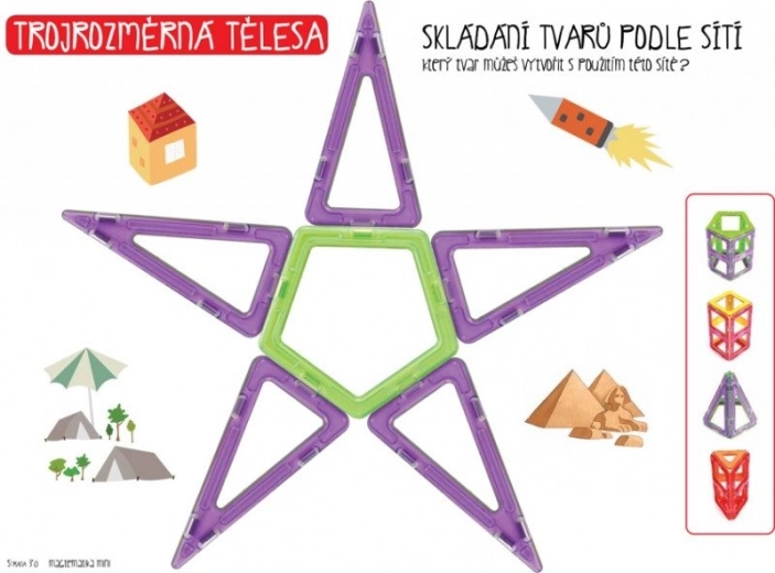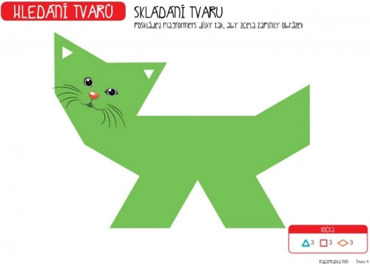 Billedlærebog for børn fra 3 år på tjekkisk i A3-format med 48 vandafvisende sider. Takket være skabeloner i den faktiske størrelse af MAGFORMERS-delene kan børn træne former og farver, udvikle rumlig fantasi og lære grundlæggende matematik og geometri gennem leg. De fleste opgaver arbejder med at lægge rigtige dele på, så lærebogen bliver en del af byggeriet.