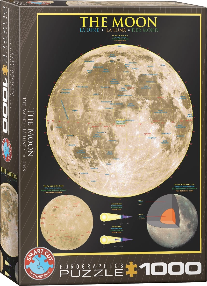 Fordyb dig i universets fascinerende verden med dette premium puslespil fra EUROGRAPHICS. Den særlige udstansning følger ikke det almindelige gitter – hjørner og kanter på brikkerne ligger ikke på samme akse, og formene er utraditionelle. Det øger sværhedsgraden og giver samtidig en mere engagerende oplevelse under samlingen. Når det er samlet, får du et imponerende billede af Månen, som tager sig flot ud både på væggen og i ramme.