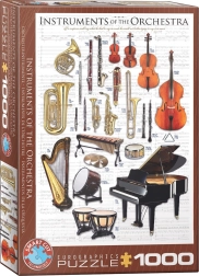 Opdag den fascinerende musikkens verden med EUROGRAPHICS-puslespil på 1000 brikker, som viser blæse-, stryge-, tangentinstrumenter, selvklingende og membranofoner på en baggrund af stilfuld nodeskrift. Takket være de originale, uregelmæssige brikformer og den øgede sværhedsgrad får du mange timers underholdning og udfordring.