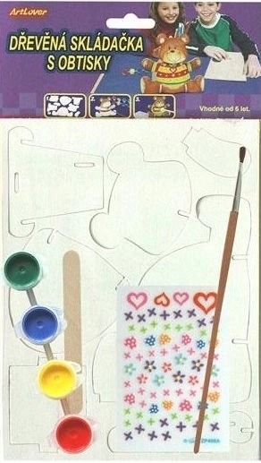 Kreativt 3D træpuslespil ARTLOVER – blyantholder Bjørneunge med farver, pensel og overføringsbilleder. Let at samle, udvikler fantasi og finmotorik.
