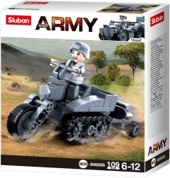 Oplev og skab din egen historiske motorcykel med bælter fra Anden Verdenskrig ved hjælp af Sluban-byggesættet. Høj kvalitet og slidstærkt ABS-plast, som delene er lavet af, sikrer mere sikker leg og lang levetid.