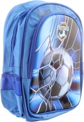 En blå taske med fodbolddesign, ideel til små sportsentusiaster.