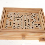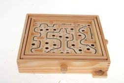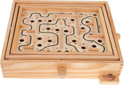 Dyk ned i en verden af underholdning med træspillet Labyrint, som tilbyder en unik spilleoplevelse og samtidig udvikler færdigheder. Dette spil er designet til at stimulere koncentration og hånd-øje-koordination. Med de drejelige knapper på siderne kan du nemt vippe spillepladen og navigere kuglen.