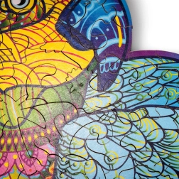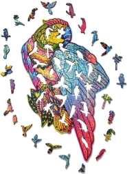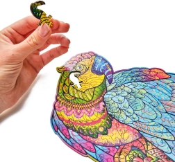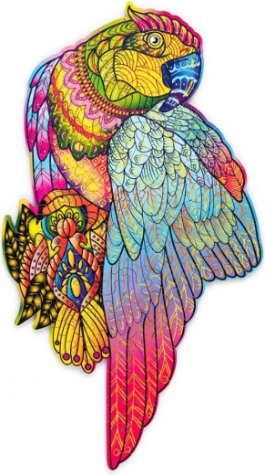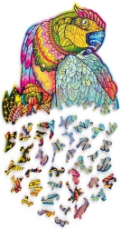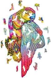 Træpuslespillet i form af en farverig papegøje med komplekse mønstre og strålende farver vil fascinere enhver, der elsker udfordringer.
