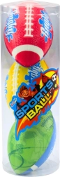 Frem støttende aktiv leg med et sæt på 3 skum rugbybolde i iøjnefaldende farver. Den bløde skum er ideel til børn, reducerer risikoen for skader og gør det samtidig nemt at gribe og kaste. Perfekt til familieaktiviteter udendørs samt træning af koordination og smidighed.