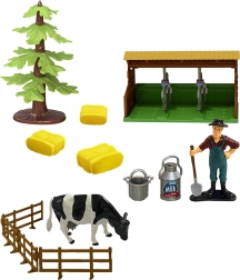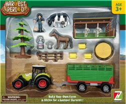 Sættet inkluderer en trailer til hø og andet landbrugstilbehør, der beriger børnenes leg med nye muligheder.