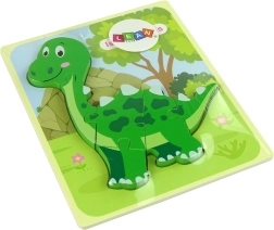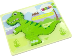 Brikkerne er lavet af træ med en tykkelse på 5 mm, hvilket sikrer sikkerhed og let håndtering for små børn. Takket være de klare farver og enkle design kan selv de mindste børn nemt samle billedet. Der er to slags dinosaurmotiver tilgængelige: tyrannosaurus og isanosaurus. Informer sælgeren om typen ved valg.