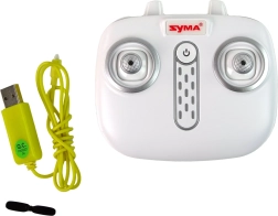 Betjeningen er nem takket være den hvide fjernbetjening med dimensionerne 13 cm x 12 cm x 5 cm (4 x AA-batterier er ikke inkluderet). Takket være 2.4G-teknologien kan helikopteren fjernstyres på afstande op til 20 meter fra fjernbetjeningen.