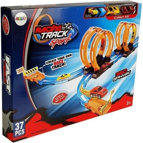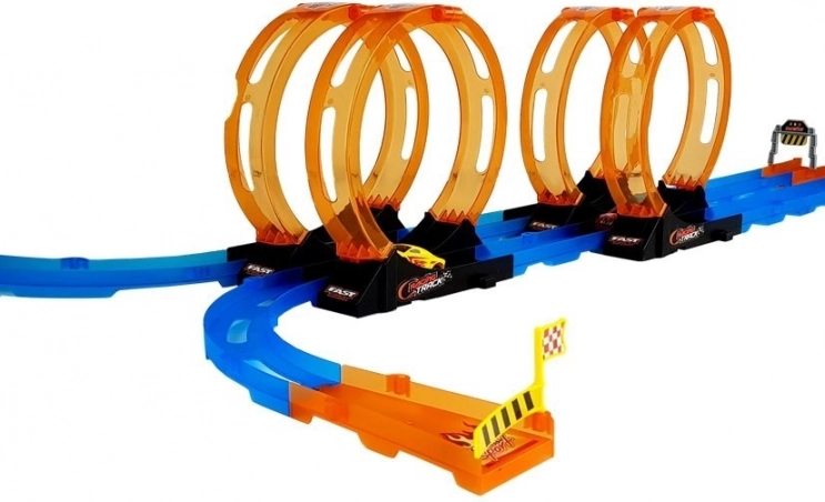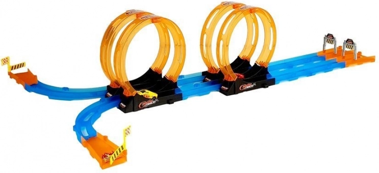 Denne farverige racerbane med seje loops er skabt til fart og stunts. Bilerne med pull-back-mekanisme skal blot trækkes tilbage, slippes og suses gennem fire loops med fuld hastighed. Banen giver sjov for børn fra 3 år og understøtter sund konkurrence – hvem kommer først i mål?