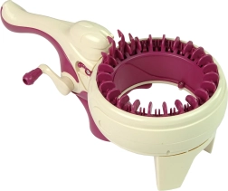 .Under legen udvikles barnets finmotorik og kreativitet. Væven er et let anvendeligt værktøj, som du kan bruge til at lave smukke og unikke accessories som halstørklæde, hue eller vanter. Først strikker du moulinégarnet på maskinen og drejer hele værktøjet ved hjælp af håndtaget. På maskinen er der fremspringende kroge, som fanger moulinéen og for eksempel strikker et langt, smukt tørklæde. Håndtagene på siderne ændrer rotationsretningen.